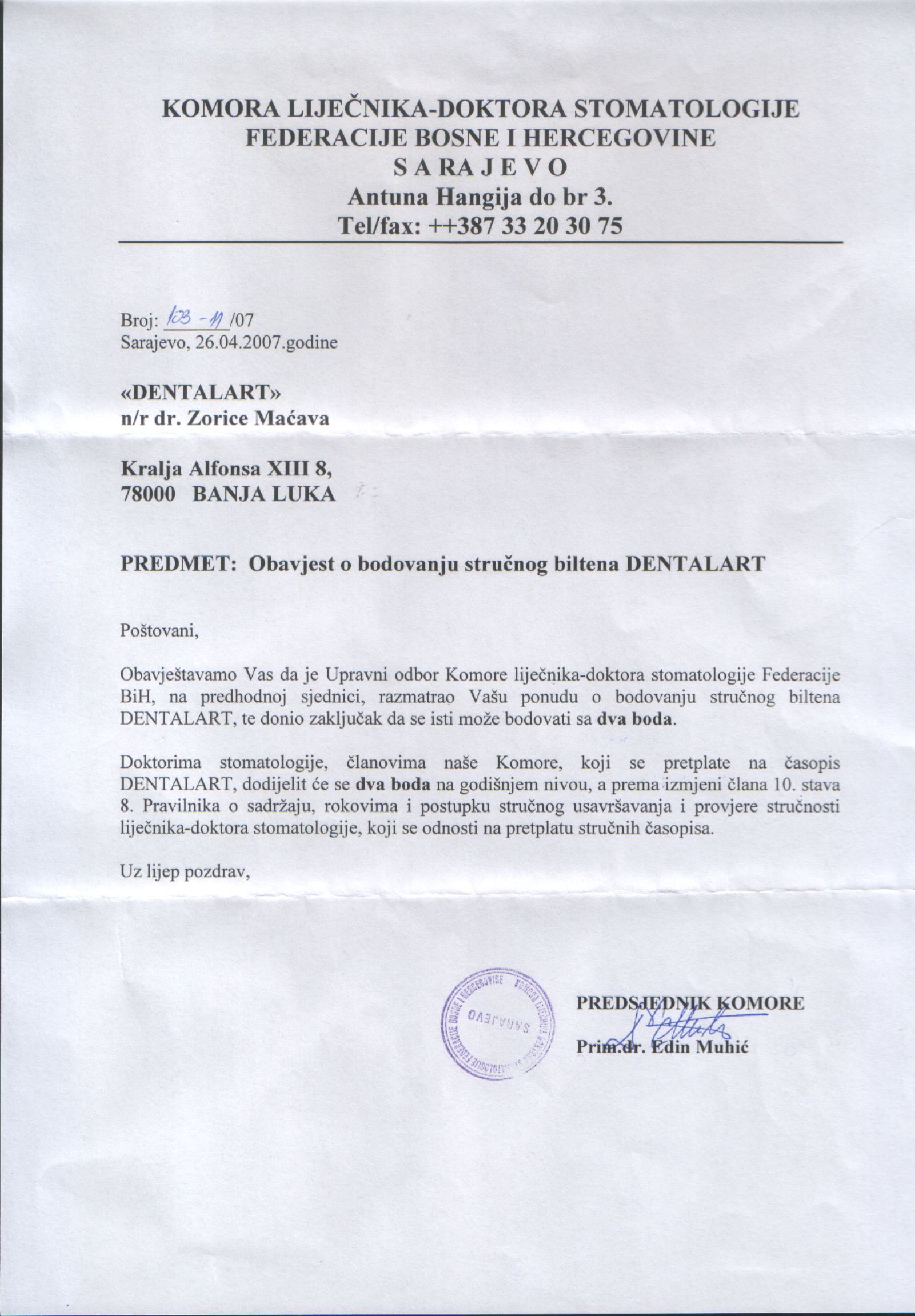 Internacionalni stručni stomatološki časopis Dentalart ulazi u šestu godinu postojanja. U proteklih pet godina Dentalart je svojim kvalitetom pridobio simpatije velikog broja stomatologa sa čitave teritorije Zapadnog Balkana. Zahvaljujući svom kvalitetu Dentalart se distribuira u BiH, SRBIJI, HRVATSKOJ, MAKEDONIJI, a određea količina ide i u NJEMAČKU, DANSKU, RUSIJU, BUGARSKU, GRČKU i ITALIJU.